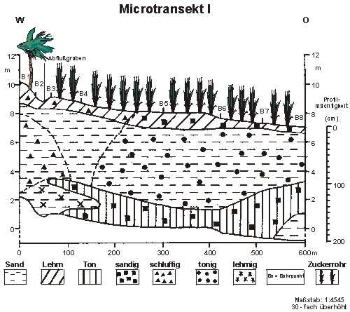 Bohrungen in einem Zuckerrohracker abgeteuft worden sind. Anhand dieser